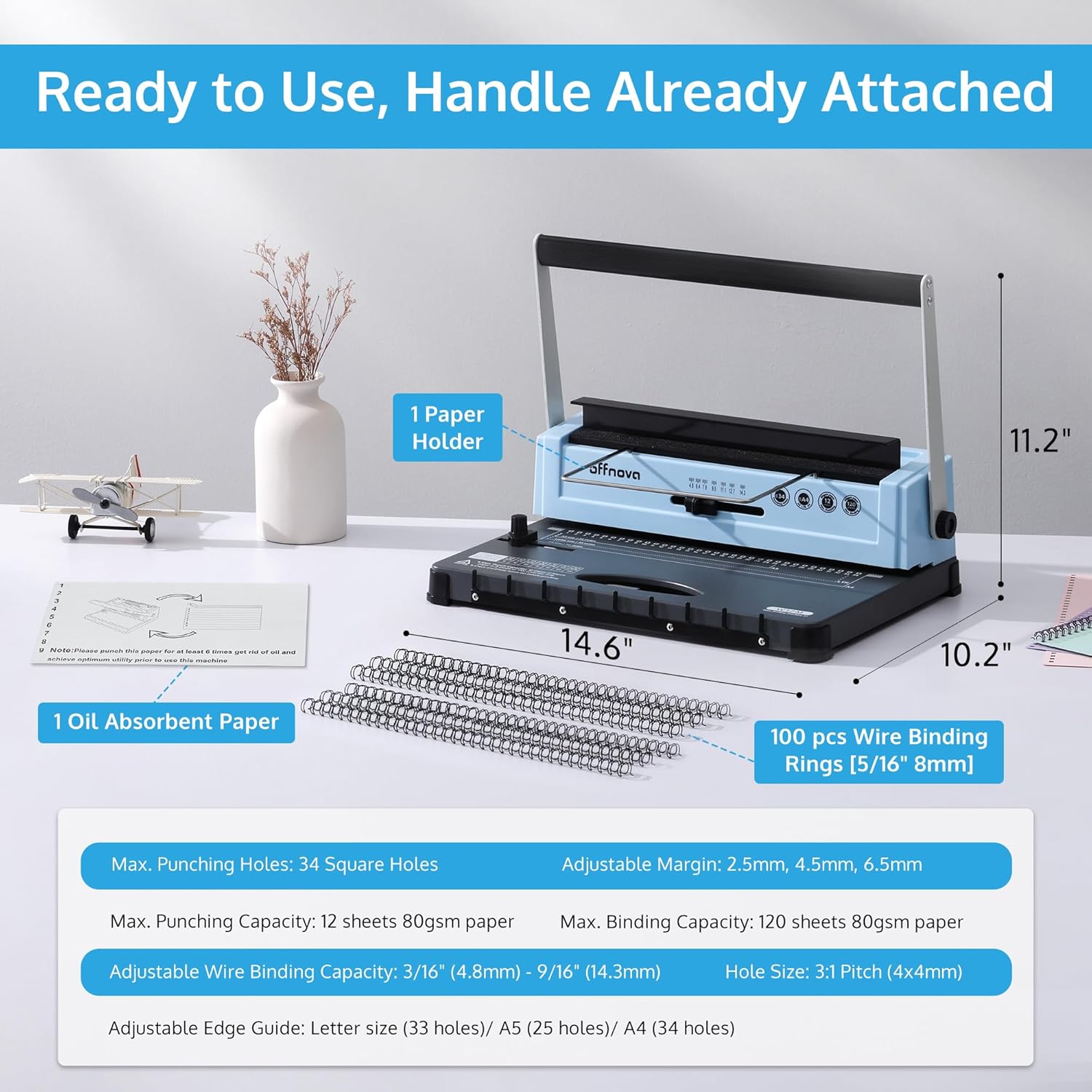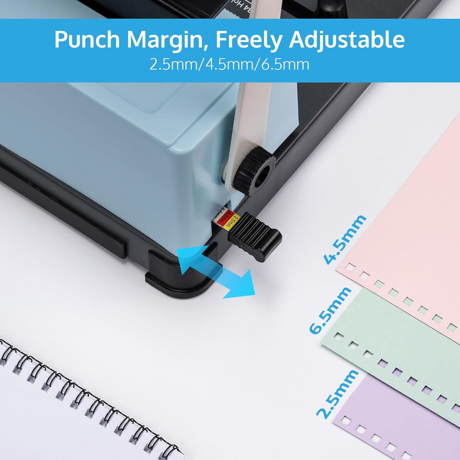 - Easy to Punch & Bind - The humanized longer handle allows you to cut papers with minimal force. Simply apply steady pressure to punch holes in up to 12 sheets or max binding 120 sheets at a time.