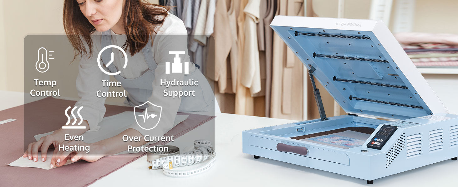 Features overheat protection, an easy-to-read display, and intuitive controls, offering a reliable and safe solution for precisely curing DTF powder ink transfers.
