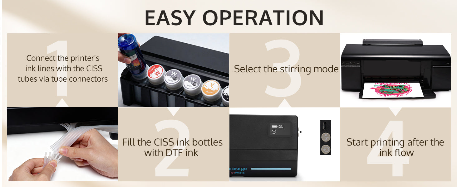 Upgraded DTF CISS Set and DTF Pigment Ink - White x2 + CMYK