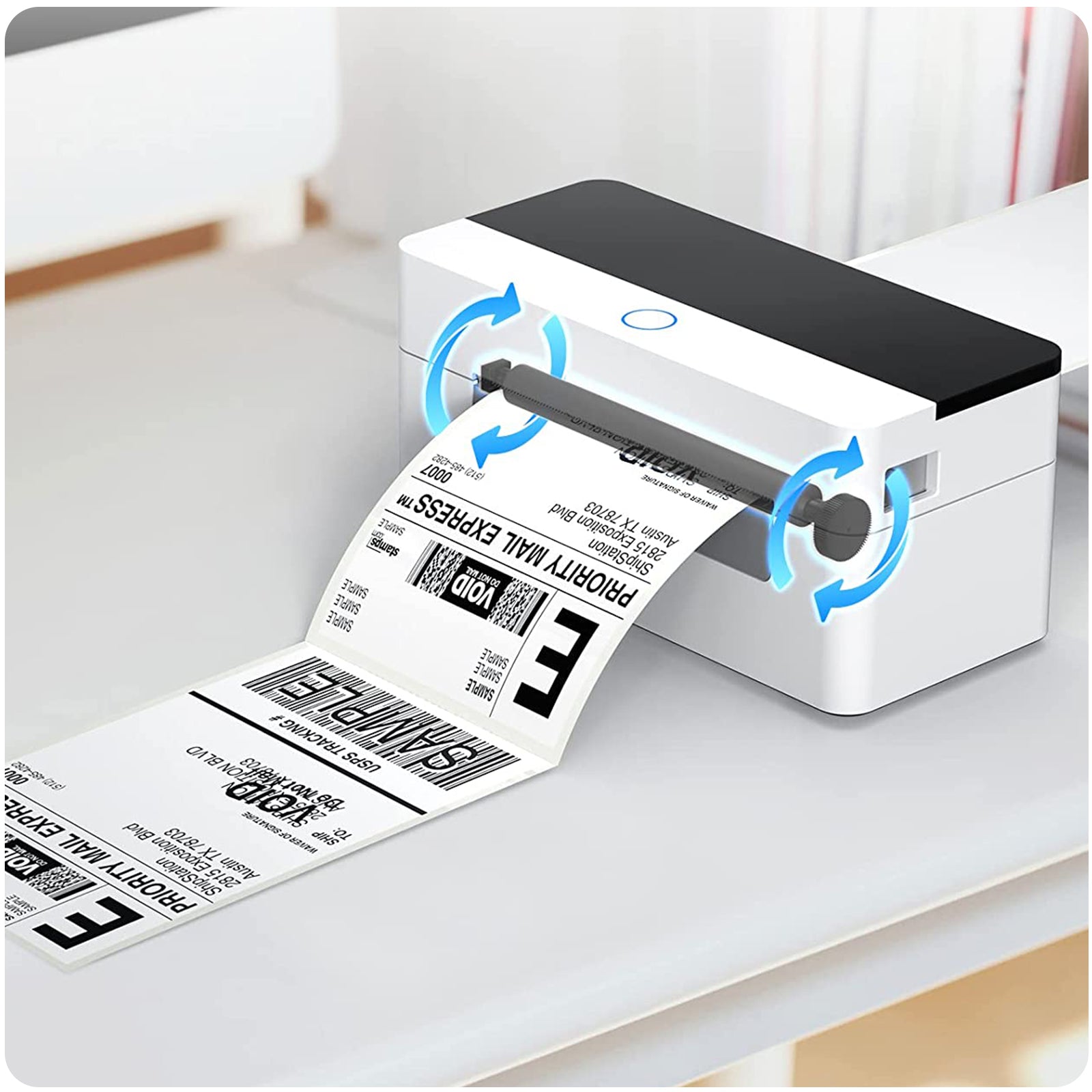 - High Speed & Efficiency - Printing at 150mm/sec, this shipping label printer can print about 80 sheets 4" x 6" labels per minute, working continuously for more than 12 hours a day.